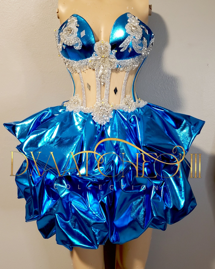 Short ruffle turquoise and silver mini dress perfect for birthdays, homecoming, red carpet events etc.