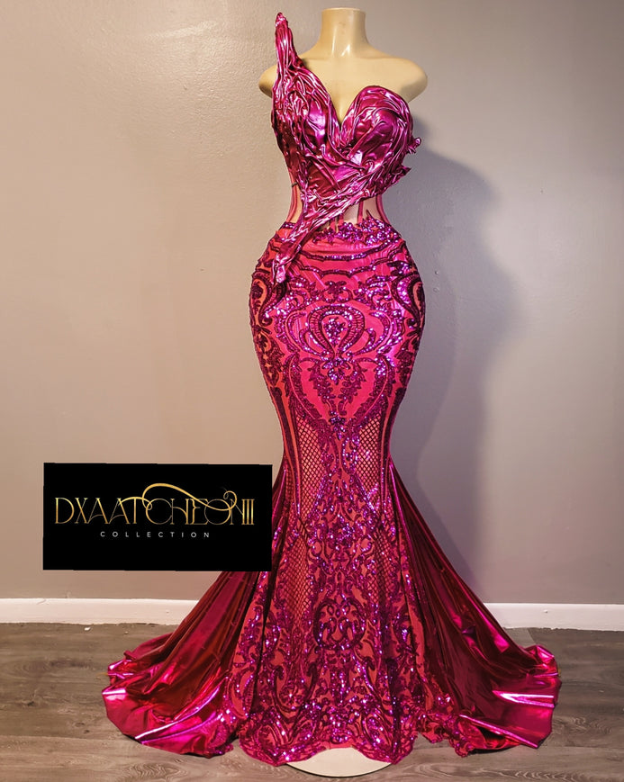 Custom hard wetlook drapped corset with sequin mermaid bottom. Back is lace up.