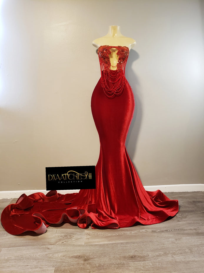 Luxury velvet gown with beaded bling and mermaid **Made to order.**